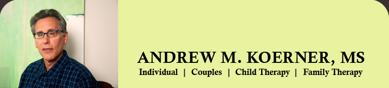 Andrew Koerner has been practicing psychology for twenty-seven years. He has training and experience in helping adults, couples, families, adolescents and children. His studies have included psychoanalytic therapy, cognitive behavioral therapy, family and marital therapy, and meditational therapy. He has experience treating depression, anxiety, relationship problems, parent-child issues, family problems, trauma associated with catastrophic experiences or abuse, and loss from death or life transitions.